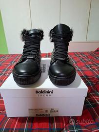 Stivaletti donna Baldinini in pelle martellata nella scatola originale. Colore nero. Con lacci. Punta tonda. Taglia 39.