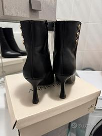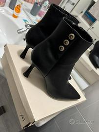 Eleganti stivaletti neri con tacco, perfetti per completare ogni outfit. - Design a punta. - Dettagli con bottoni decorativi. - Tacco sottile e slanciato.