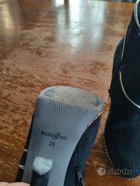 stivaletti camoscio con tacco 12 usati 3 volte neri con inserti color oro