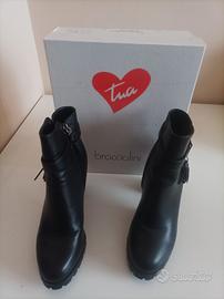 vendesi stivaletti neri donna , marca Braccialini , n 38 , tacco alto 8 cm circa . Mai indossati, con zip laterale . Semplici ed eleganti oltre che comodo