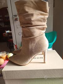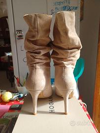 Stivali donna invernali color cipria , in pelle scamosciata, con tacchi a spillo , numero 39 . Mai usati ancora in confezione originale.