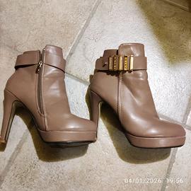 Vendo Stiveletti alla caviglia,come nuovi, indossati una sola volta. Numero 38, Tacco 12, punta semiarrotondata, Marca Primadonna. Stivali alla caviglia, in pelle con interno felpato, cerniera laterale; inserti sul cinturino in oro laccato, colore tortora.
