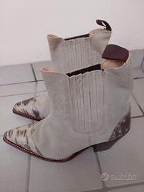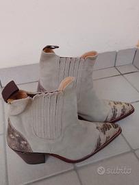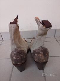 STIVALETTI Donna in camoscio colore beige e decorazioni. Taglia 40.