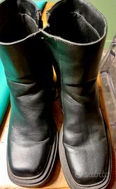 Tronchetti neri donna, Zara, taglia 37, suola in para con carrarmato, tacco6,5 cm, chiusura con zip laterale, punta quadrata, altezza gambale 16 cm, caldi e confortevoli. Perfetti.