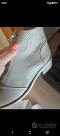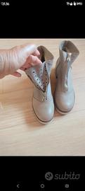 stivaletti in pelle donna beige traforati con cerniera davanti che si può chiudere o lasciare un po' aperta per vedere le borchie praticamente nuovi