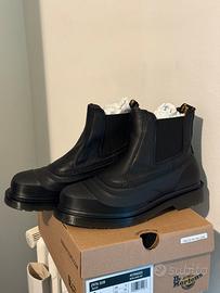 Dr. Martens stivaletti 2976 sub neri. Nuovi mai indossati. Numero 39. Gli stivaletti Chelsea 2976 Sub non si fermano davanti a nulla, che sia giornata di sole o diluvio. Realizzati in robusta pelle Newland, presentano i classici pannelli laterali elasticizzati per una calzata facile e veloce, cuciture impermeabili "sub" e una guardia sulla punta per darti ancora più resistenza contro le intemperie. Il tutto poggia su una classica suola nera DMS per offrirti il massimo del comfort. MATERIALE Newlands WP è una pelle pieno fiore, cerosa e dall'effetto a grana fine. Tomaia: 45% Altro (PVC) / 35% Pelle / 20% Tessuto Rivestimento: 100% Tessuto Suola: 100% PVC