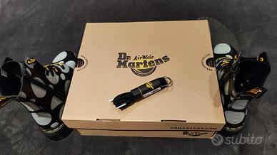 NB: NON SPEDISCO AL DI FUORI DELL'ITALIA. Stupende scarpe stivale Dr. Martens originalissimi, modello jadon polka doppia suola acquistati personalmente da negozio autorizzato per regalo, mai alzato neanche per prova, pagato 224 euro più 14 euro i lacci montati totale 238 euro, me li ha messi direttamente il negoziante, quelli neri in foto sono quelli che escono di serie. Possibilità di vendita senza i lacci con le scritte. Prezzo non trattabile e no offerte, li rivendo a prezzo di realizzo già con sconto personale del 30%. Ottimo regalo, ottimo affare, spedizione tempestiva all'acquisto. Colorazione bellissima e difficile da trovare. Per ricerca Timberland, Docksteps, Converse, Guess, Cavalli, Levi's, Patrizia Pepe, Liu jo, Armani, Gaelle, Versace.