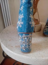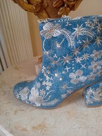 stivaletti estivi in jeans ricamati