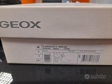 Stivaletti Geox D Anylla High C D04LMC 00043 C9999. Tomaia in pelle, soletta e interno in cuoio, suola e tacco in sintetico pregiato. Tacco largo, chiusura con cerniera. Tecnologia Geox Respira. Made in Italy. Numero 38 EU.