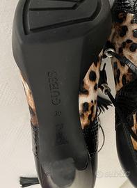 Stivaletti originali Guess in pelle nera, opaca liscia e lucida a pelle di serpente