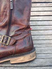 Stivaletti da uomo Harley Davidson originali in vera pelle e vero cuoio misura numero 46 italiana, color cuoio scuro effetto vintage.zip laterali a destra e a sinistra, Guardalo in vero cuoio e suola in vero cuoio cuciti a mano, Interno in mesh Ancora in buone condizioni estetiche come da foto No scatola