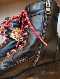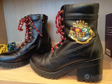 Vendo stivaletti Harry Potter originali EMP, colore nero, taglia 39. Modello comodo e versatile con: - zip laterale - lacci intercambiabili nei colori delle 4 casate - dettaglio stemma Hogwarts laterale - suola carrarmato con tacco stabile Usati ma in buone condizioni generali, solo normali segni di utilizzo sulla punta (visibili in foto). Perfetti per fan della saga o per outfit casual con un tocco nerd