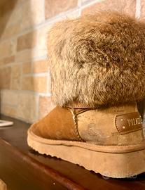 Stivaletti invernali Alviero Martini 1ª Classe, caldissimi e comodissimi ❄️ Modello tipo “ugg” con interno imbottito e risvolto in eco-pelliccia, perfetti per l’inverno. Colore marrone caldo con dettagli iconici della linea 1ª Classe.