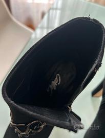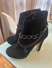 Stivaletti in camoscio nero con plateau e tacco di 12 cm e catene con logo