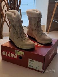 Sivaletti da donna di Marca OLANG, in camoscio beige allacciati con pelliccia interna, numero EU 41. Seminuovi in quanto non piu' usati per ragioni di numero. Suola in gomma bicolore.