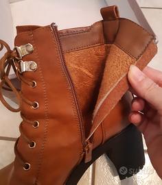 Stivaletti in cuoio con ricamo laterale nella parte esterna. Plateau h. 2 cm, tacco 8 cm, internamente imbottiti in pile. Scarpa n. 36, indossati pochissimo, comodi e caldi.