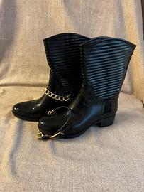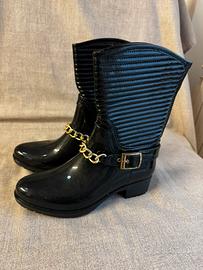 Stivaletti in gomma per pioggia, la catenella si può togliere. Puoi andare in mezzo alle pozzanghere non entra acqua già tipo pochissimo.