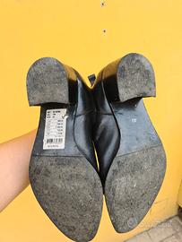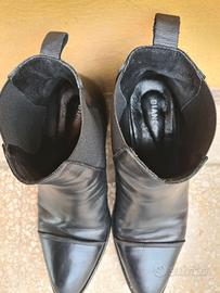 Stivaletti alla caviglia completamente in pelle, marca Bianco.Sono una misura 40 ma vestono un 40,5/41 e sono adatti per chi ha la pianta larga. Io solitamente di stivali porto il 40 ma questi mi stanno abbondanti. Il tacco misura 4,5 cm per cui sono estremamente comodi anche per tutti i giorni. Pagati 125 €.