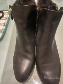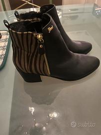 Stivaletto in pelle con disegni zebrati tacco medio con cerniera