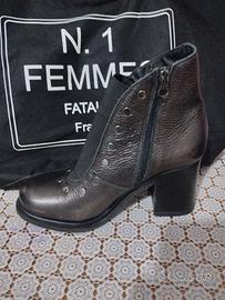 Bellissimi stivaletti della marca Osteria, realizzati in vera pelle. Un modello versatile in bronzo scuro/canna di fucile con effetto metallizzato.