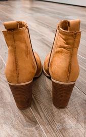 Tronchetti color cuoio con tacco largo. Il design traforato li rende perfetti per la mezza stagione o per le serate estive. Chiusura con cerniera laterale. Comodi ed eleganti. Usati ma in ottime condizioni.