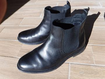 Vendo scarpe alte tipo stivaletto impermeabile in vera pelle nera marca LA CUOIERIA resistente con asola elasticizzata e suola tutta gommata misura 41 abbondante (ma calza pure 42) come in foto.