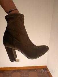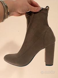 Stivaletti alla caviglia in morbido effetto camoscio color cammello. Tacco largo e stabile, ideale sia con jeans che con gonne o vestiti.