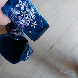 stivaletti in velour ricamati, tacco cm. 7 - taglia 36 USATI POCHISSIMO