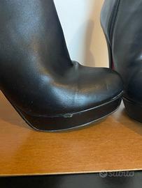 Usati pochissimo, presentano dei leggeri difetti nella pelle sulla punta o sul bordo, come da foto.