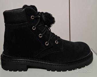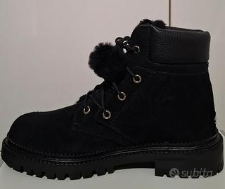 Tomaia in pelle scamosciata, interno in montone e inserti in lapin.