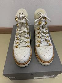 Valorizza il tuo guardaroba invernale con questi eleganti stivaletti chiusi piatti di Le Silla. Realizzati in lussuosa pelle bianca, questi stivali sono perfetti per la donna moderna che apprezza lo stile e la raffinatezza.
