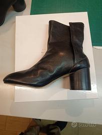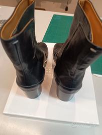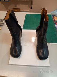 Taglia 36, mai indossati. Stivaletti in morbida nappa con tacco cilindrico da 6 cm. Il taglio Tabi sulla punta si ispira alle omonime calze tradizionali giapponesi del XV secolo ed è stato lanciato nel 1989, in occasione della primissima collezione della Maison. Un dettaglio che incarna tutto lo spirito avanguardista e ribelle di Maison Margiela: un classico senza tempo, oggetto di continue esplorazioni attraverso il susseguirsi delle collezioni.