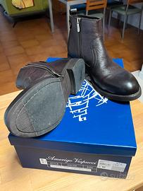 Descrizione* AMERIGO VESPUCCI Eleganti stivaletti invernali da uomo in pelle di ottima qualità Perfetti per completare un look casual • più formale. - Materiale: vera pelle - Chiusura laterale con zip - Suola in gomma resistente Indossati una sola volta con molta cura Misura errata Le foto sono parte integrante dell'annuncio