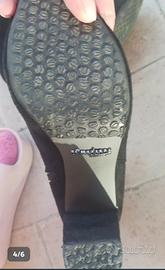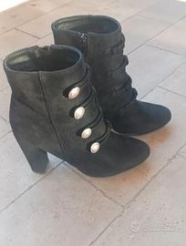 Bellissimi stivaletti come nuovi, misura 37, "PrimaDonna", in camoscio nero con bottoni oro. Tacco e mezza suola rifatti in gomma non perché usurati ma per mia comodità. Usati una volta, praticamente nuovi. Tacco 10. Vendo per inutilizzo