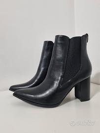 Vendo stivaletti neri da donna, stile Chelsea, con tacco largo e stabile.