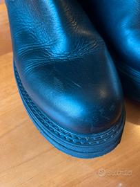In buone condizioni, presentano qualche segno di usura come si può vedere nelle foto e il tacco della scarpa destra è un po’ consumato (ultima foto)