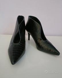 Stivaletti neri con apertura sul dorso del piede. Finitura ecopelle effetto coccodrillo. Usati pochissimo.