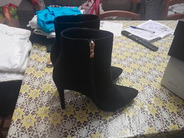 eleganti stivaletti neri. Materiale scamosciato, tacco alto a punta.