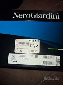 vendo causa inutilizzo stivaletti originali Nero Giardini colore nero in pelle, usati pochissimo, misura 40 ma veste anche 39,con chiusura a cerniera,quindi comodi per indossarli. Non vendo con formula Tuttosubito.