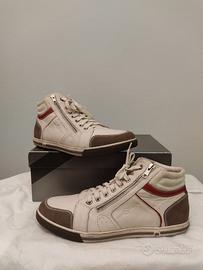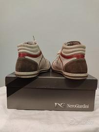 Stivaletti NERO GIARDINI Uomo Originali Taglia 44 Colore BEIGE chiaro In PELLE NAPPA morbidissima Particolari in CAMOSCIO di colore marrone Foderati internamente in Pelle Apertura/Chiusura con cerniera laterale La suola degli stivaletti è PRATICAMENTE NUOVA (foto 6) Consegnati nella loro scatola originale Le scarpe sono state indossate soltanto due volte, quindi sono veramente NUOVE, vengono proposte a 25 euro… sicuramente un’OTTIMA occasione!!!