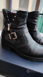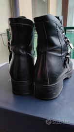 Vendo bellissimi stivaletti NeroGiardini, numero 39, un'autentica garanzia di qualità e stile Made in Italy. Realizzati in pregiata pelle nera spazzolata, questi boots presentano un design grintoso e moderno, caratterizzato da cinturini con fibbia metallica, inserti elastici laterali e una pratica chiusura con zip interna. La suola carrarmato in gomma offre un grip eccellente e un comfort duraturo, rendendoli ideali per affrontare la stagione fredda e le giornate di pioggia con eleganza.