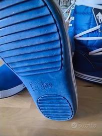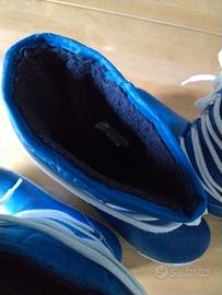 2 paia di stivaletti azzurri con laccetti bianchi, interno in caldo pile blu.