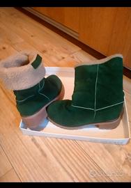 vendo stivaletti Verdi numero 39 usati poco causa errata taglia e tacco troppo alto per me. stivali di uno splendido color verde Pino con il pelo all'interno per un caldo confortevole e possibilità di usarli anche con risvolto come da foto.