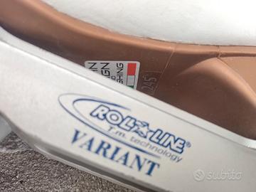 Stivaletto numero 37 di scarpa marca RISPORT (no EDEA, CF, BELATI, JACKSON, ecc.) modello ANTARES taglia 245. Piastra marca ROLL LINE modello VARIANT M numero 140. In regalo freni e ruote marca BOIANI SPORT STAR ITALY HD 70 - 55 complete di cuscinetti. Tutto già montato sul pattino. Pattini a rotelle completi da libero.