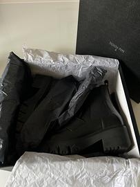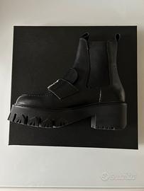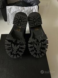 Tacco largo posteriore (circa 5cm) e plateau anteriore (circa 3cm).
