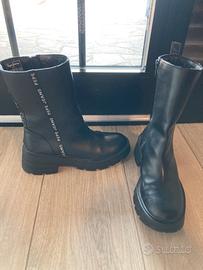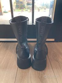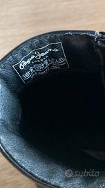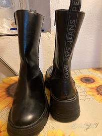 Stivaletti Pepe Jeans neri n. 39 indossati due volte Altezza tacco 6 cm plateau 3 cm, altezza gambale 20 cm, suola carrarmato in gomma antiscivolo . Interno pelle e tessuto,