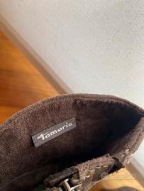 Stivaletti per donna, nuovi, marca Tamaris, di pelle scamosciata color beige tendente al marrone. Misura 37.