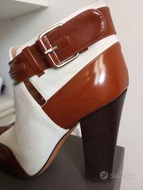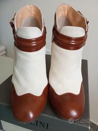 Stivaletti Pollini in pelle e camoscio con fibbia, tacco 11 cm, n38, utilizzati raramente, ottime condizioni