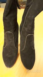Stivaletti donna POLLINI tacco alto con plateau in camoscio colore nero con profili in pelle. Numero 38 1/2 con tacco h. 11 cm. Perfetti per occasioni eleganti od informali. Pelle 100%, praticamente inutilizzati . Vendo per rinnovo guardaroba, date un'occhiata alle altre mie inserzioni
