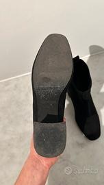 Stivaletti di Primadonna in camoscio nero senza zip, si infilano a mo di calzino. Punta quadrata e tacco largo comodo 5 cm